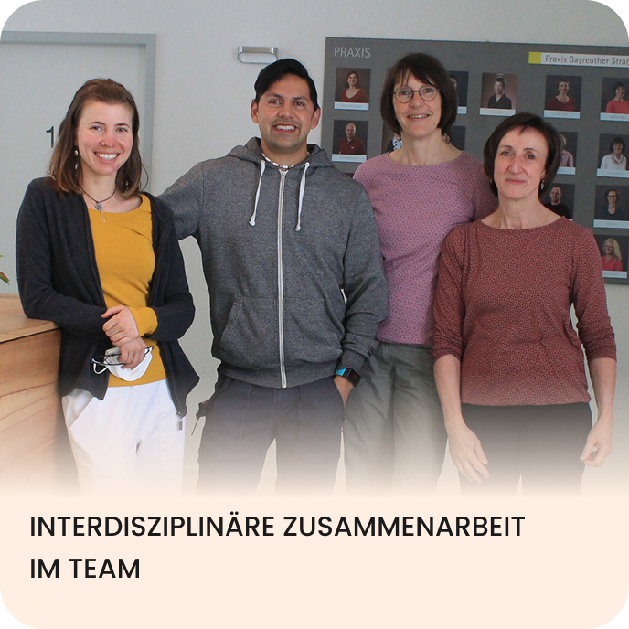 Die enge fachliche Kooperation aller Therapeut:innen garantiert eine optimale Behandlungsstrategie für jeden einzelnen Patienten. Schon bei der Anmeldung prüfen wir anhand Ihrer Diagnose, welcher Therapeut für Ihr spezifisches Problem der kompetente Ansprechpartner ist.